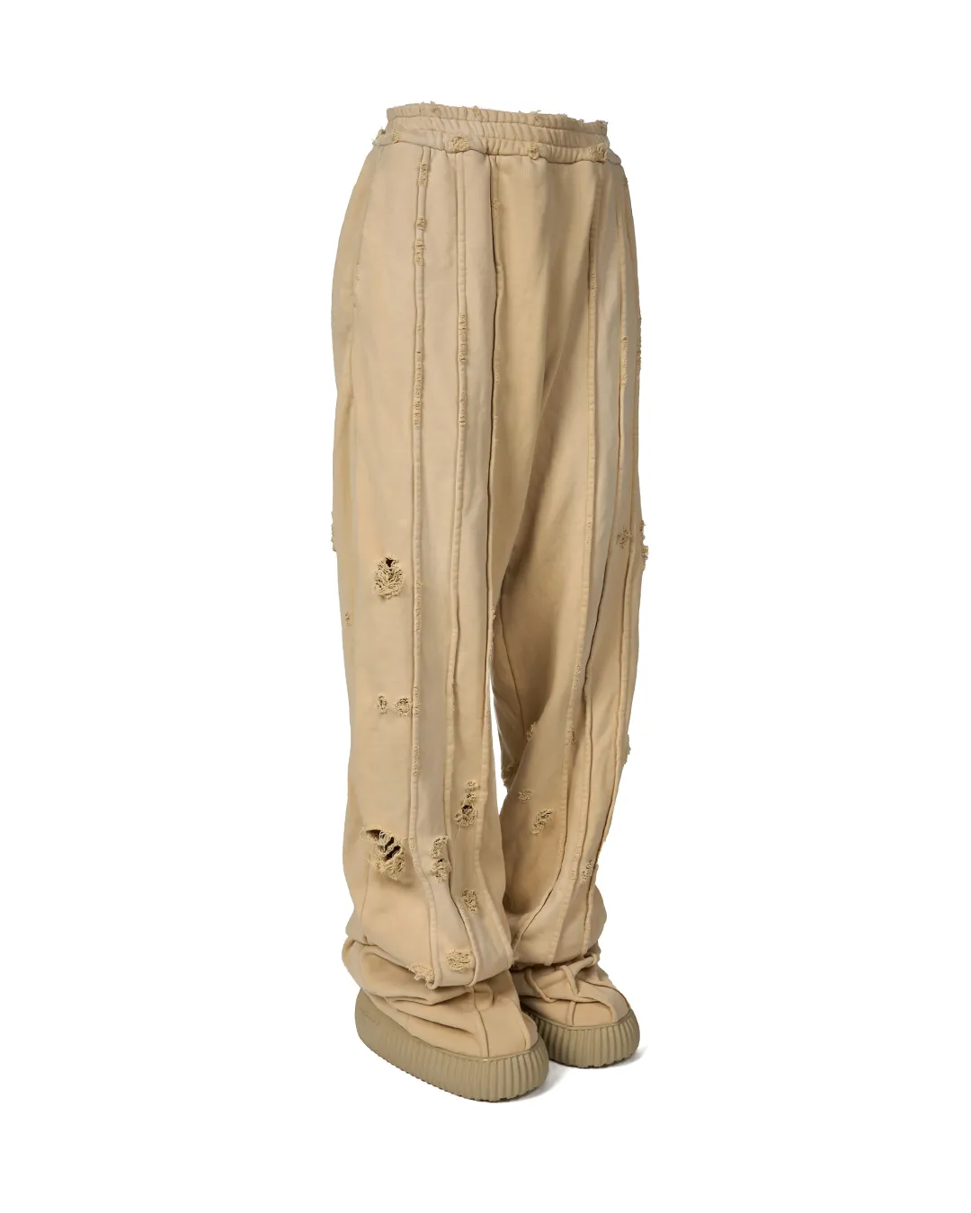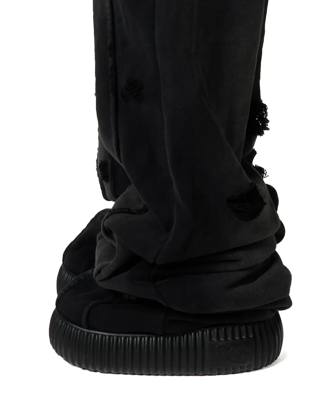 Blurring the line between pants and footwear, these uniquely creative design shoes from YELLO embody the brand’s signature innovation. The pant portion is finished with hand-applied wash, fade, and distressed treatments by skilled artisans, resulting in a one-of-a-kind look full of character and depth. YELLO’s original 6.5cm platform sole enhances the bold silhouette, adding height and a modern, fashion-forward edge. A hidden in-heel delivers an impressive leg-lengthening effect, while three central tucks create a sleek, elongated line. Every detail — down to the shape of the hem when worn — is designed for a loose yet polished silhouette. Available in black and beige, both easy to style with any top, this refined statement piece elevates seasonal looks with a sophisticated twist.