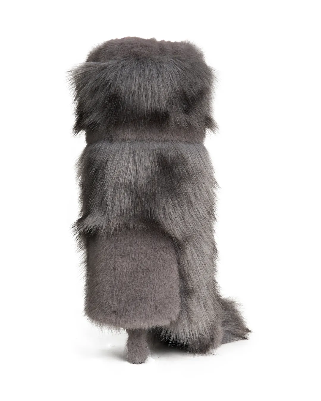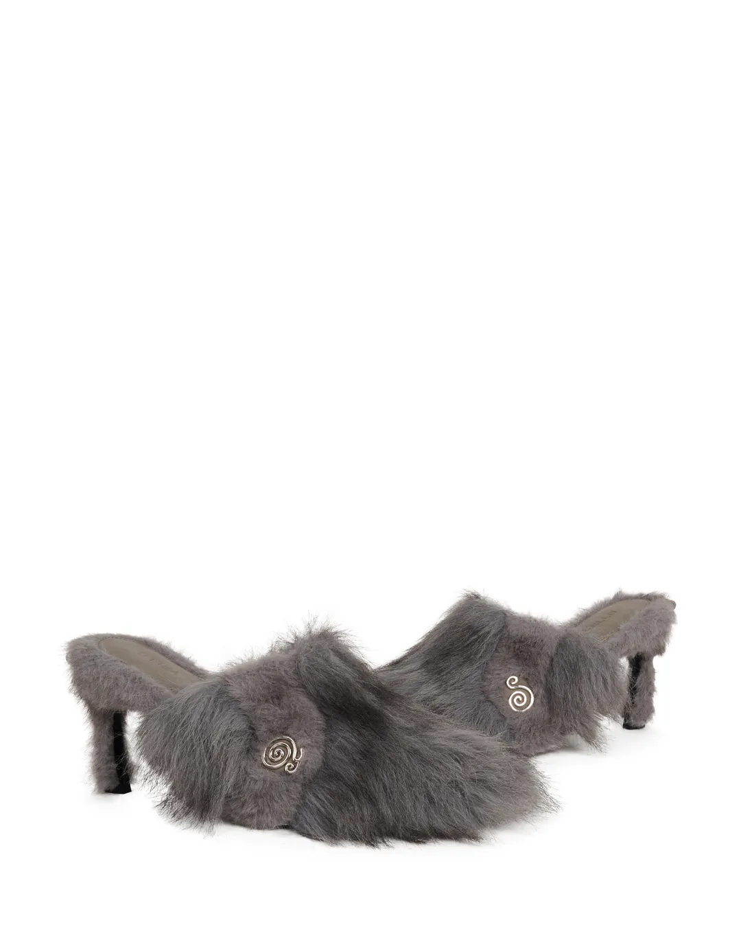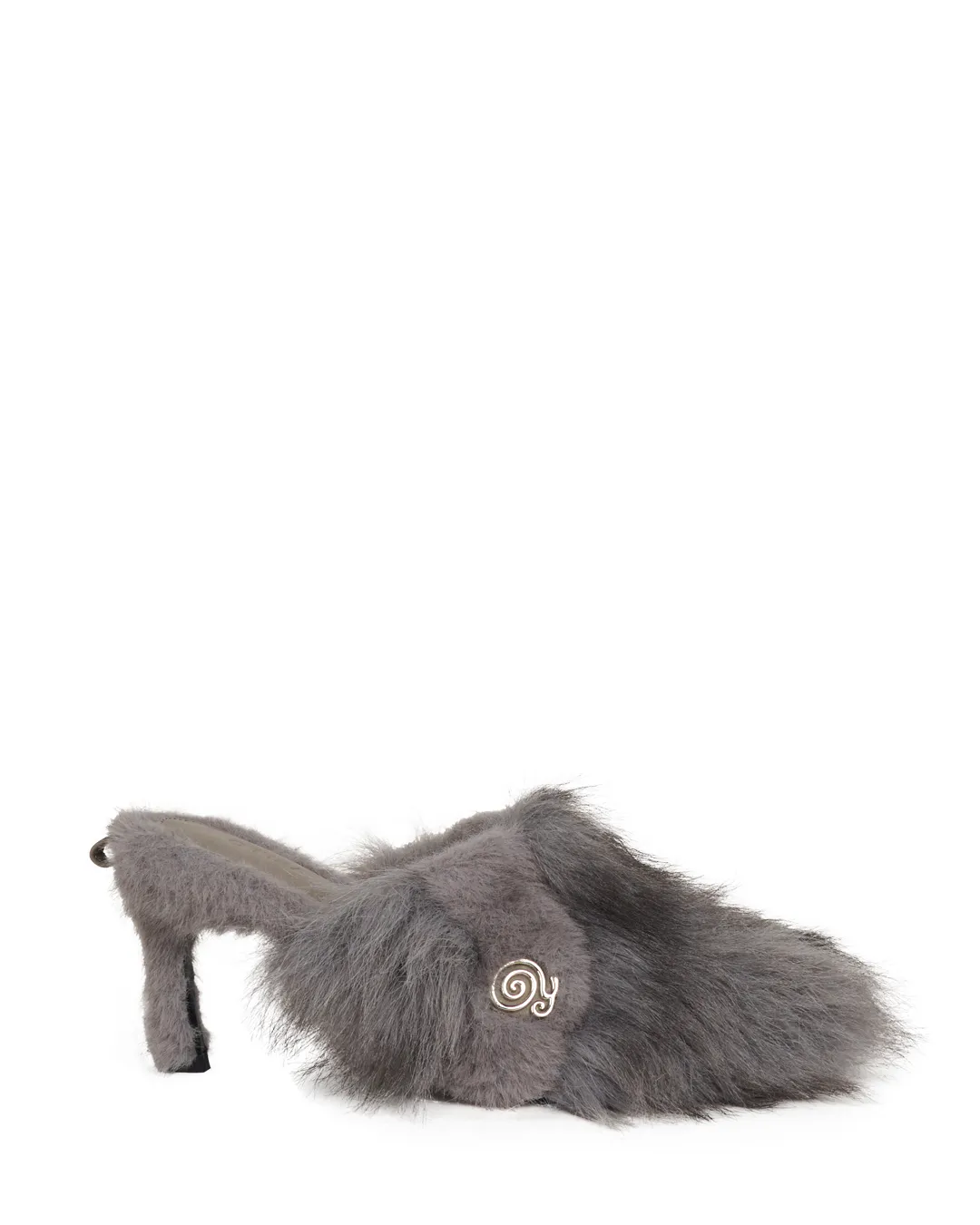 This adorable mule and leg warmer set is all about playful luxury, wrapped in plush faux fur for an irresistibly cute look. The soft, thick fur gently cocoons your feet, while the rounded toe adds a touch of feminine charm. Voluminous leg warmers smooth over the leg line and, combined with the 7.7cm heel, create a beautifully elongated silhouette. Two types of ultra-soft faux fur are used to add depth and dimension through contrasting textures. The removable leg warmers allow you to style the pair in multiple ways, adapting to different looks and occasions. A statement piece that brings a touch of luxury to any outfit, starting from the feet up.