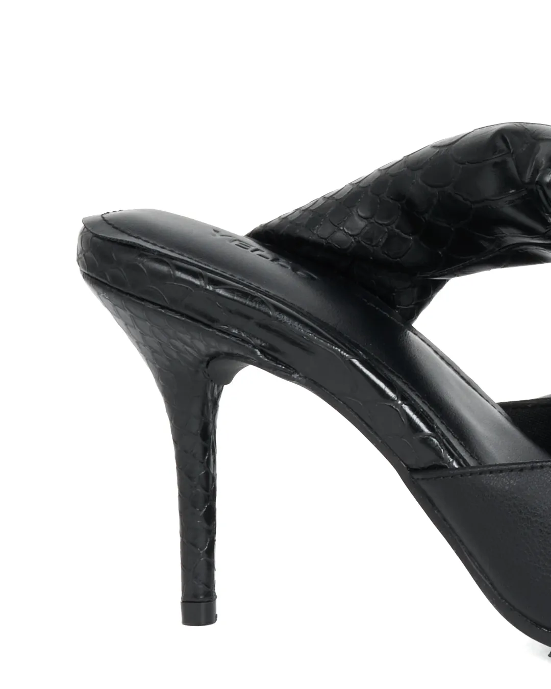 The V-cut upper enhances a refined, mode-inspired look, while the diagonally placed padded strap gently wraps and supports the foot.