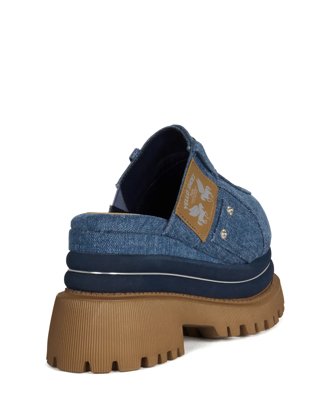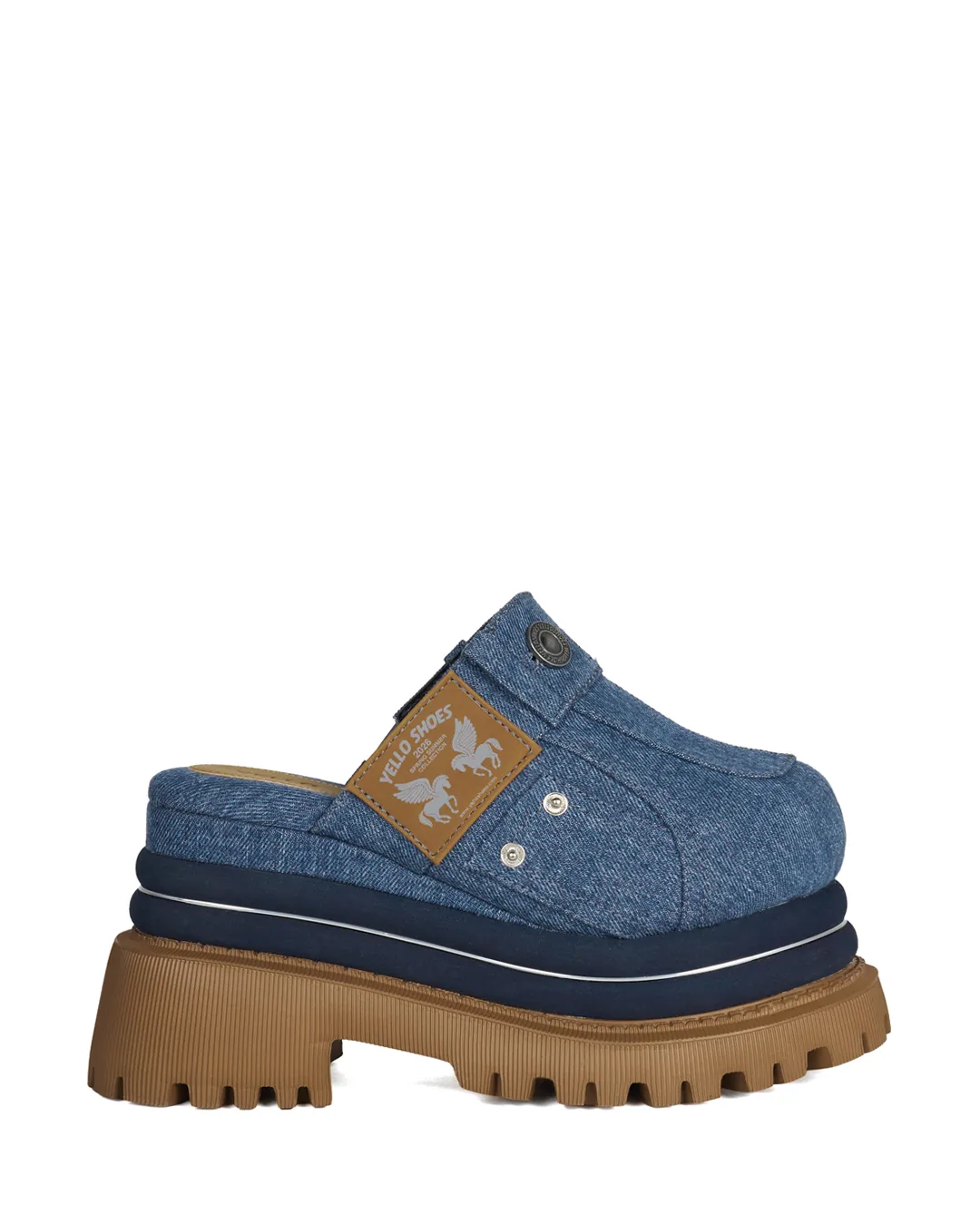 An iconic platform shoe reimagined through YELLO’s unique perspective, skillfully incorporating pant-inspired details into a bold, modern design.
