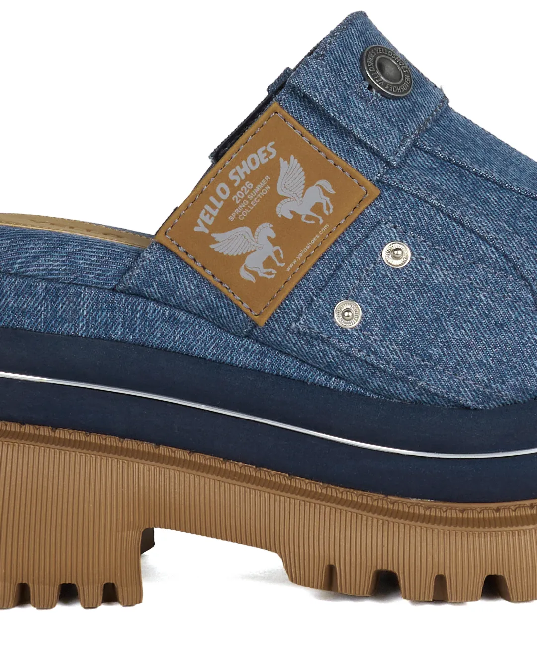 A unique leather patch printed with a Pegasus motif and a tack button engraved with “YELLO SHOES” add distinctive character, showcasing attention to detail in every element.