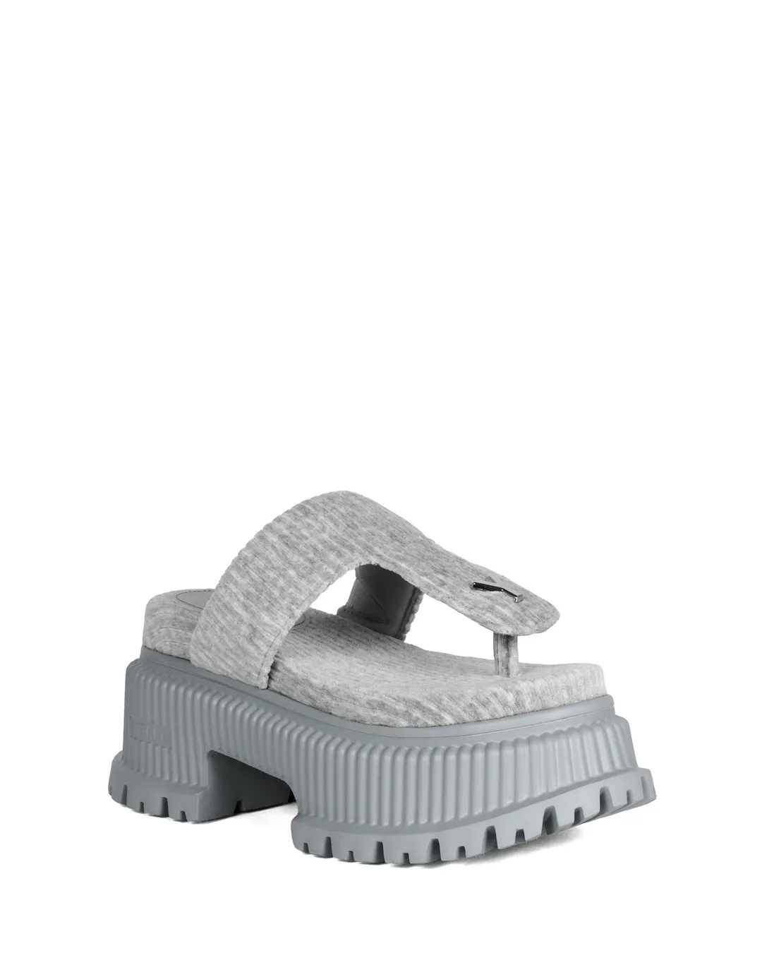 A refined platform thong sandal featuring a catchy original sole, finished with a subtly casual mood.
