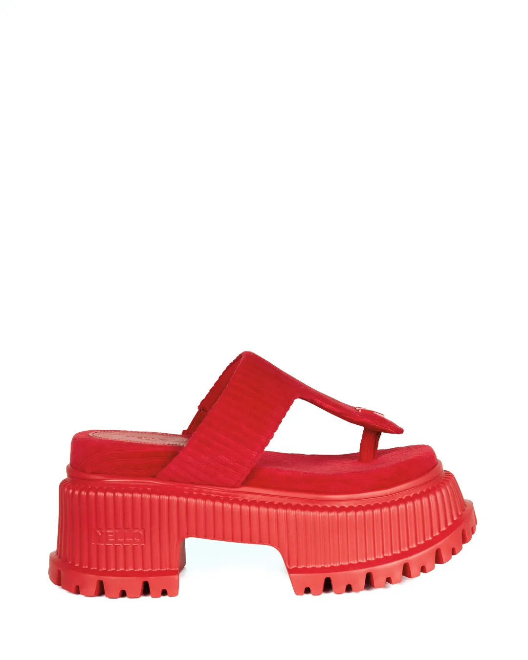 A refined platform thong sandal featuring a catchy original sole, finished with a subtly casual mood.