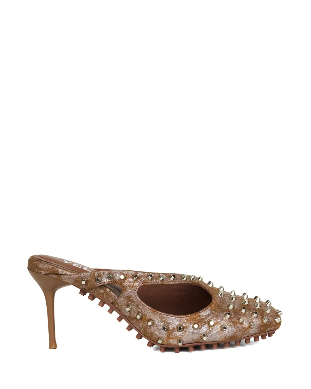A mule covered in delicate studs across the entire surface, creating an undeniably striking presence.