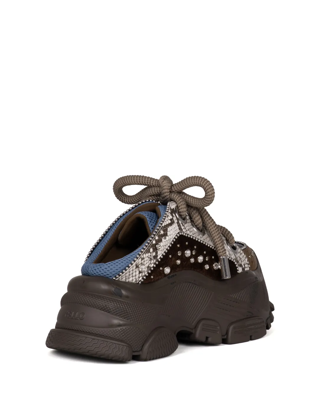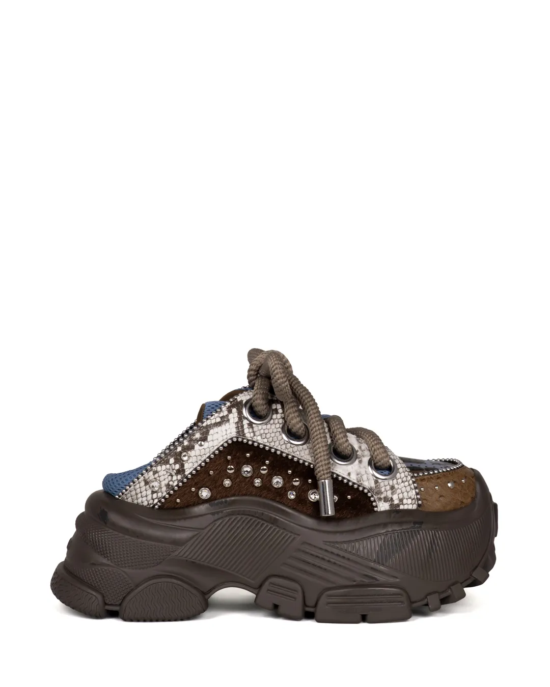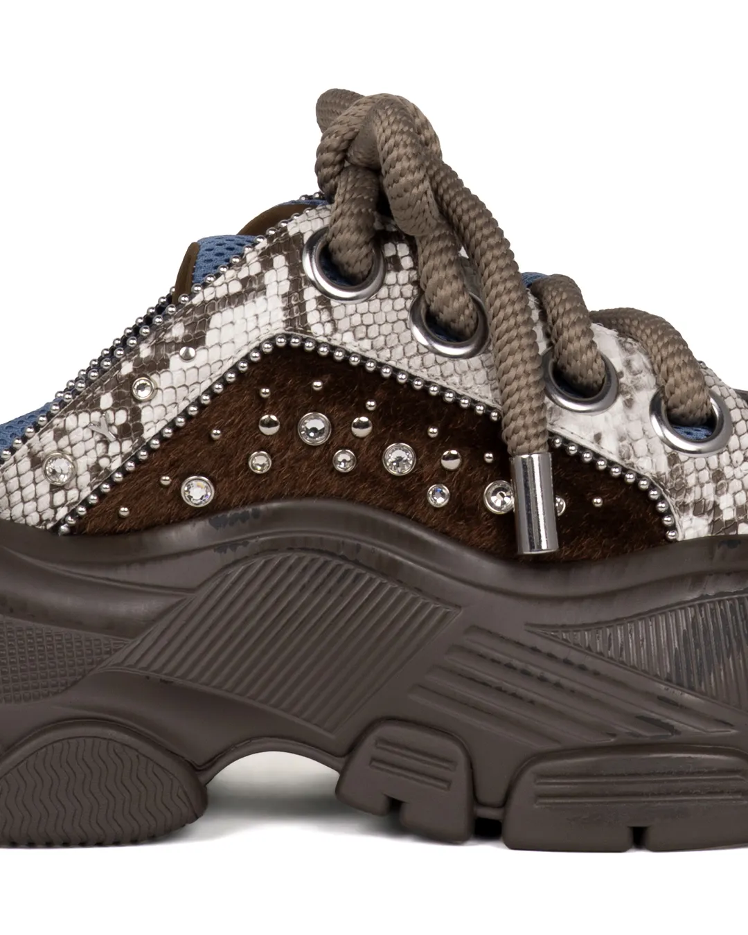 Bold, thick shoelaces draw the eye while being carefully balanced to create a more delicate appearance of the foot.