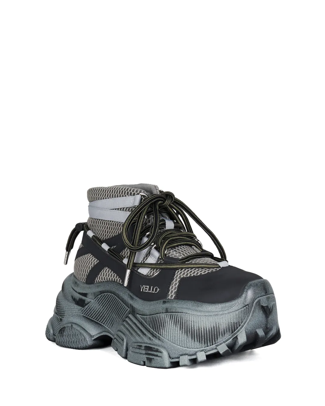 Available in two colors: classic Black, and Ash Gray featuring an edgy sole individually finished by skilled artisans.