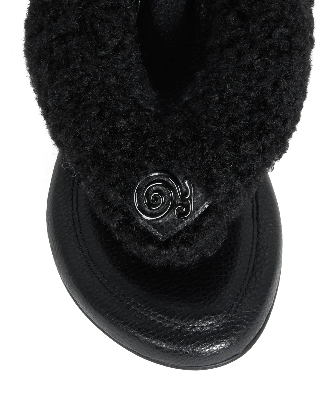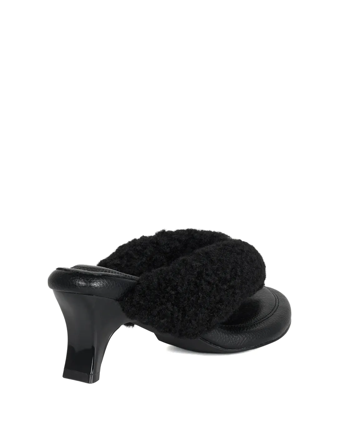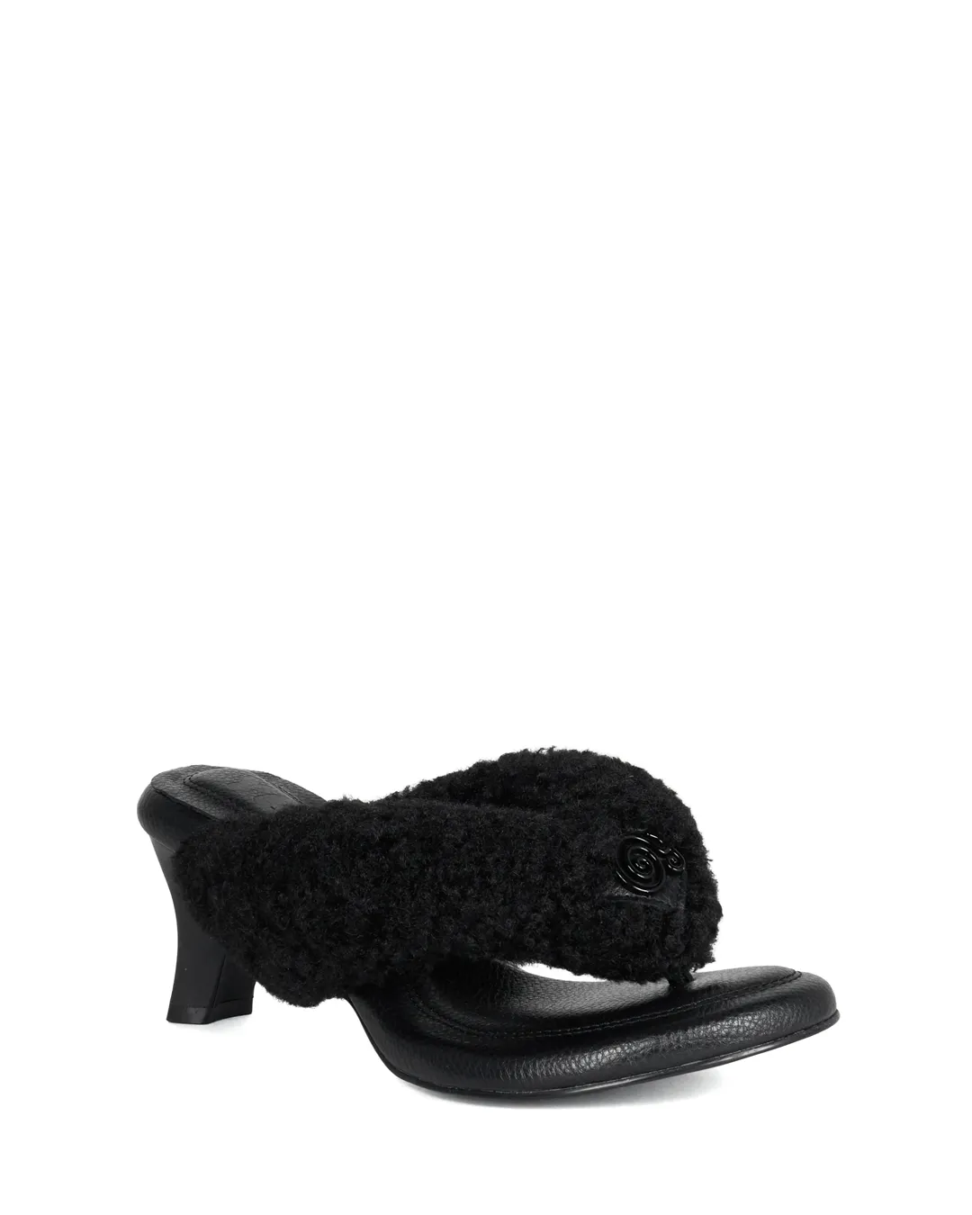 The upper is crafted from curly faux boa, wrapping the instep with a fluffy, gentle touch.