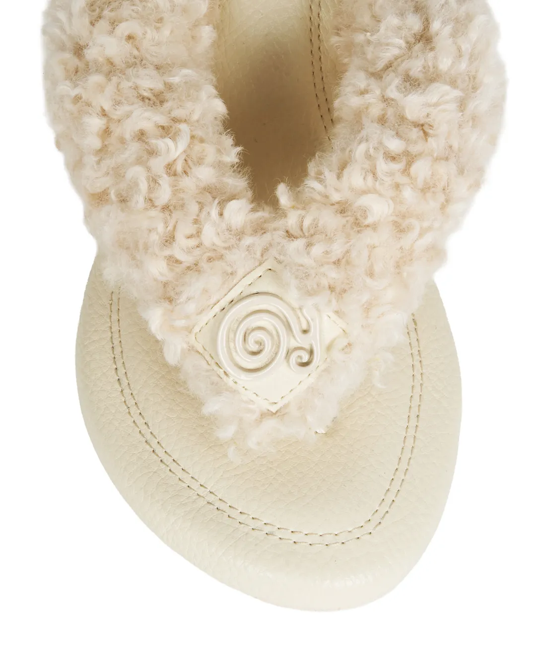 The upper is crafted from curly faux boa, wrapping the instep with a fluffy, gentle touch.