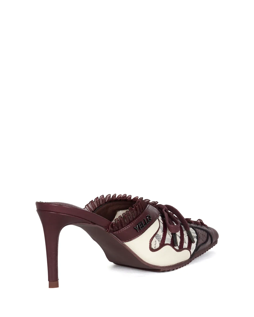 Lace-up detailing on the upper adds dimension and depth, while the delicate lace and soft frills contrast beautifully with the body’s sharp lines, creating a look that changes with every angle.