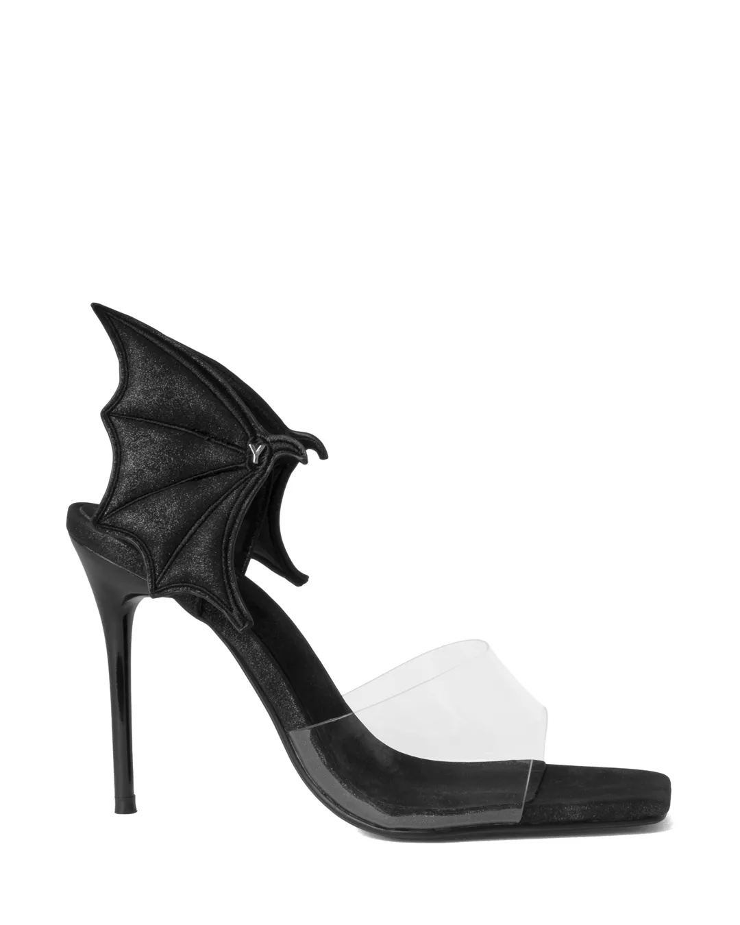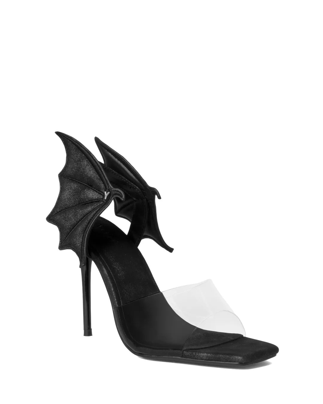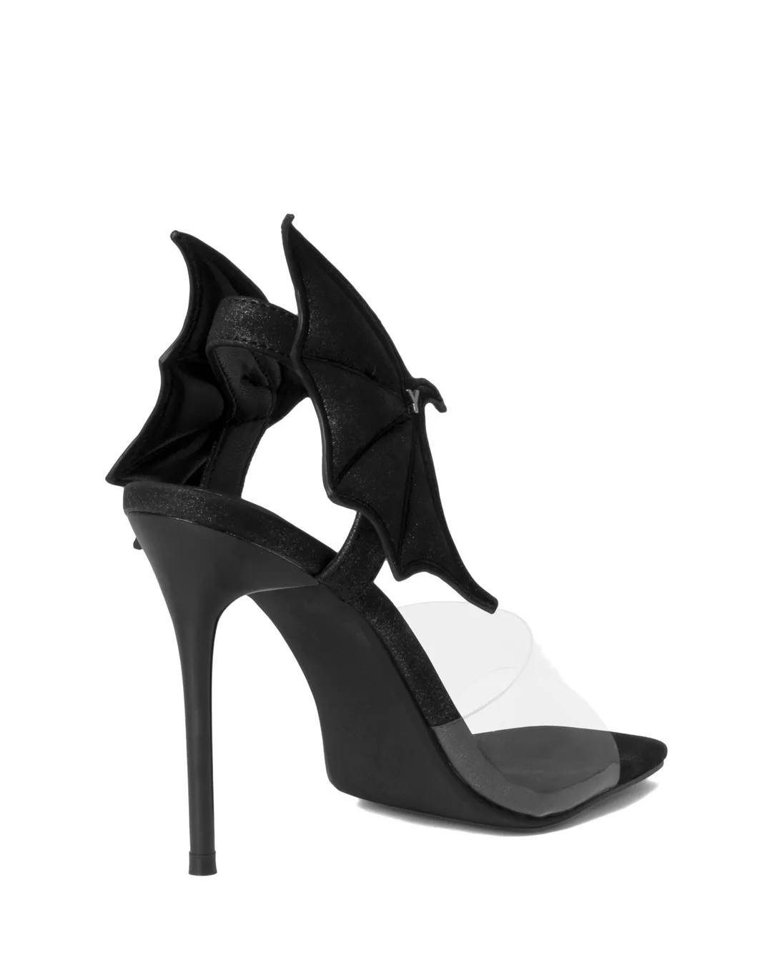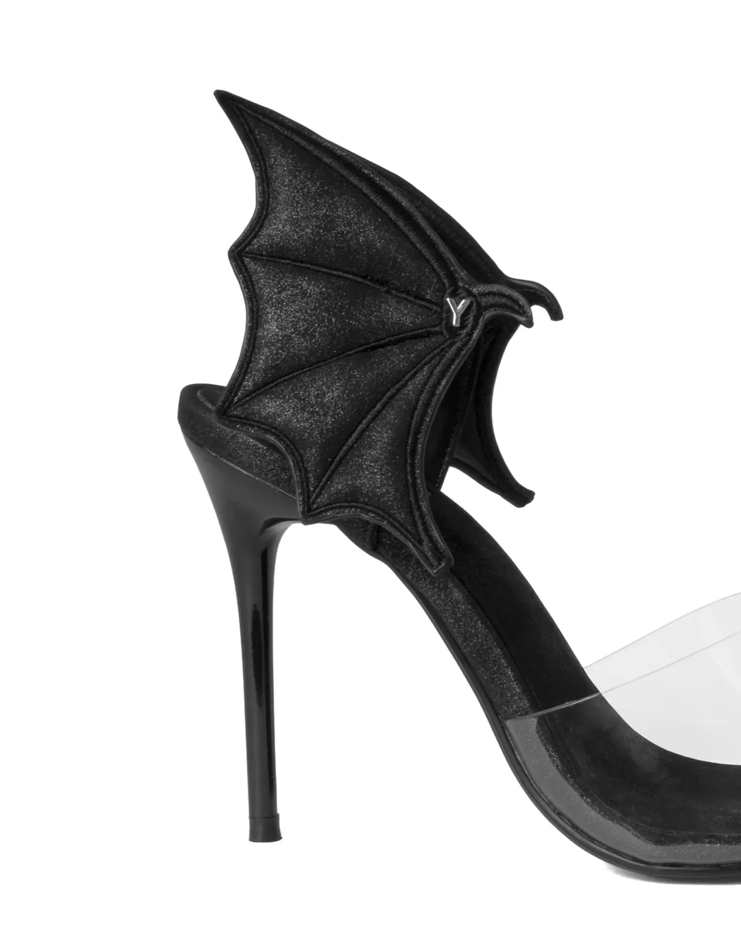 From the back of the approximately 10cm heel, sculptural devil wings extend three-dimensionally, creating a dramatic presence that turns heads with every step.