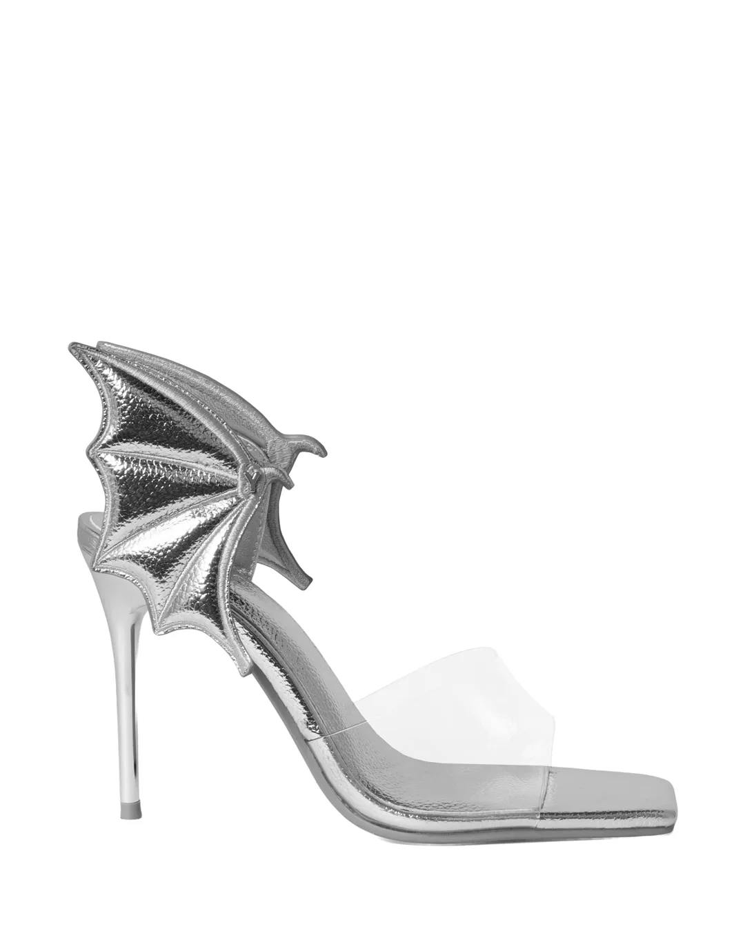 An edgy, iconic sandal featuring a clear PVC upper that adds an airy, barely-there feel, paired with devil-wing details on the back strap.